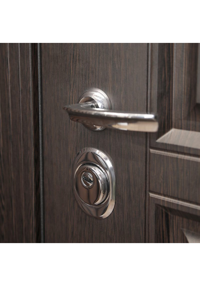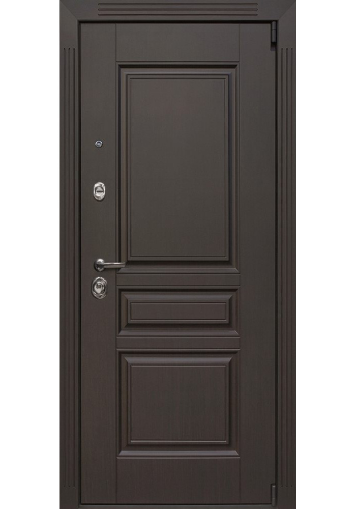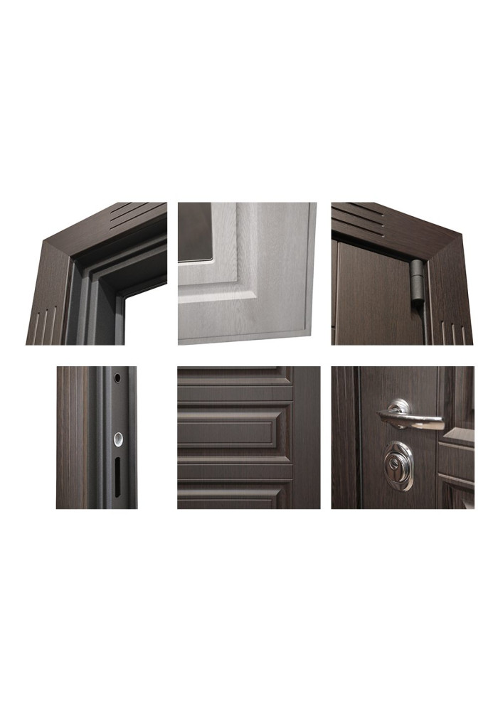 - Наружный лист металла: Лист металла 2 мм. Панель МДФ 16 мм. Объемная фрезеровка. Цвет "венге". Наличник МДФ: толщина 16 мм, ширина 85 мм.
